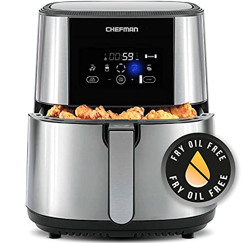Chefman TurboFry Air Fryer, XL 8-Qt Capacity for Family Cooking, BPA-Free w/Dishwasher Safe Basket, Nonstick Square Stainless Steel Airfryer w/One-Touch Presets, Use Less Oil for Healthy Rapid Frying